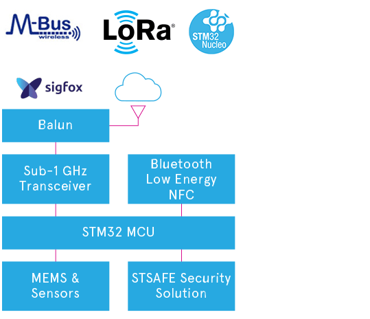 A standard-compliant wireless technology, optimized to fit long range connectivity, power efficiency and bandwidth requirements, is behind every network - regardless of its nature or purpose. With the growing importance of wireless sensor networks and the IoT, most electronic systems require wireless connectivity. ST’s portfolio includes a variety of RF transceivers, wireless microcontrollers, network processors ICs and fully certified modules for key wireless connectivity technologies including Sub-1GHz, LoRaWAN, Sigfox, Wireless M-Bus (wM-Bus), LTE Cat 1 and Narrowband IoT (NB-IoT), WiSUN and 6LowPAN